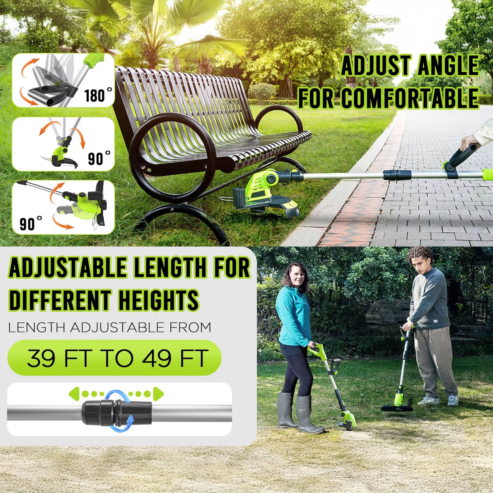 Com o seu eixo telescópico que se estende de 12 a 15 metros, o LiteWhipi adapta-se a utilizadores de todas as alturas, garantindo uma postura correta e reduzindo a tensão durante sessões de corte prolongadas.