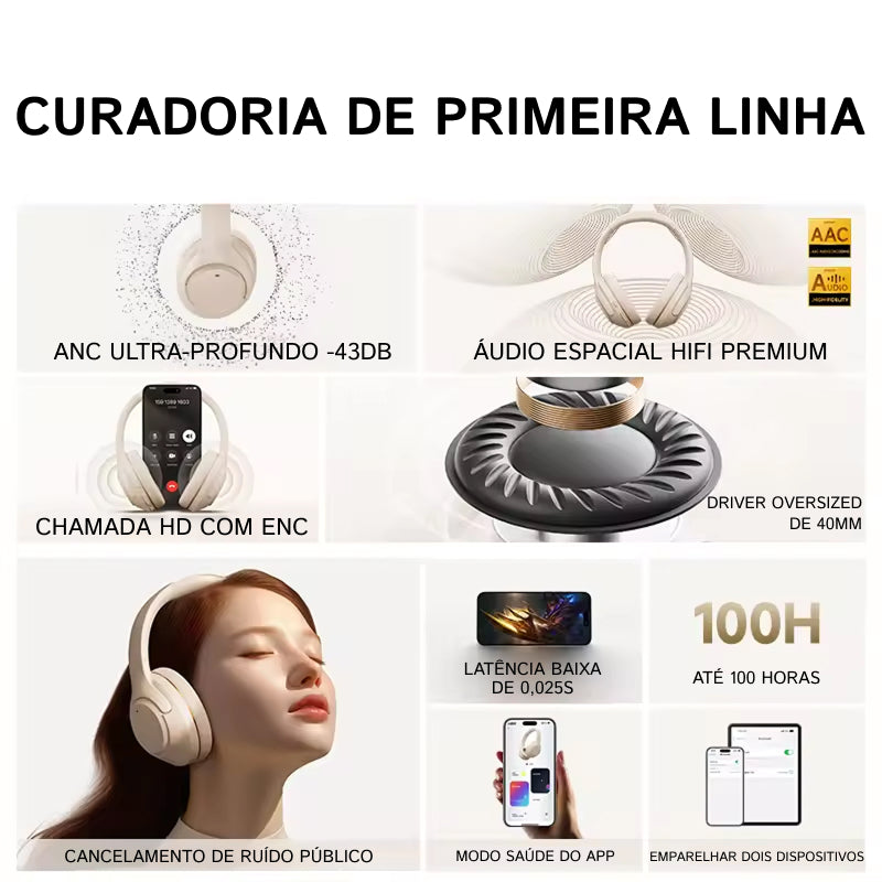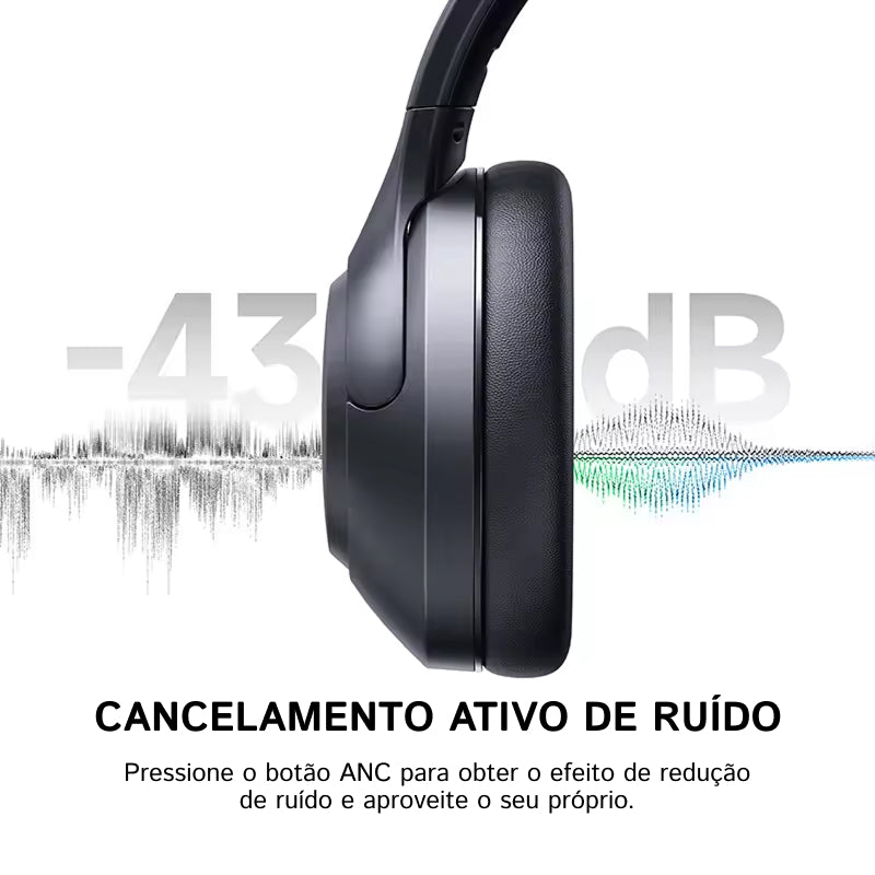 O recurso ANC usa calibração de onda sonora reversa em tempo real para cancelar o ruído ambiente, proporcionando uma experiência de audição tranquila em qualquer ambiente.